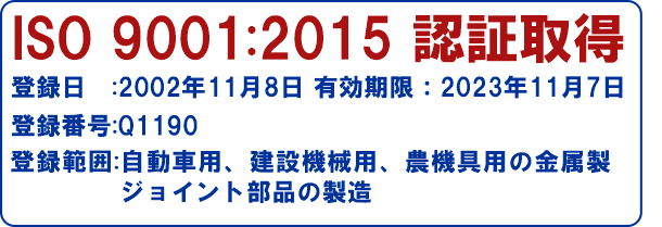 株式会社東亜工業は創業以来、さまざまな自動車部品を作り上げてきました。 2002年にはISO9001も取得し、お客様に信頼される会社であることを目標としています。